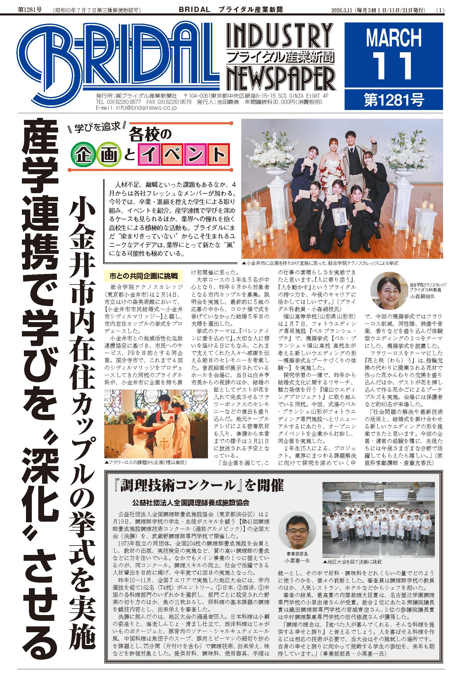 1987年の創刊以来、ブライダル業界唯一のビジネス専門紙として、結婚式ビジネスにまつわるテーマを網羅的に取材し、情報発信を通じて業界の発展を支えています。記事テーマはトレンド紹介やビジネスノウハウ、トップランナーへのインタビュー、関連業種・新規参入企業の狙い、業界発展に向けた提言など。本紙記者は毎日、業界関係者への取材活動通じて、記事を作成しています。