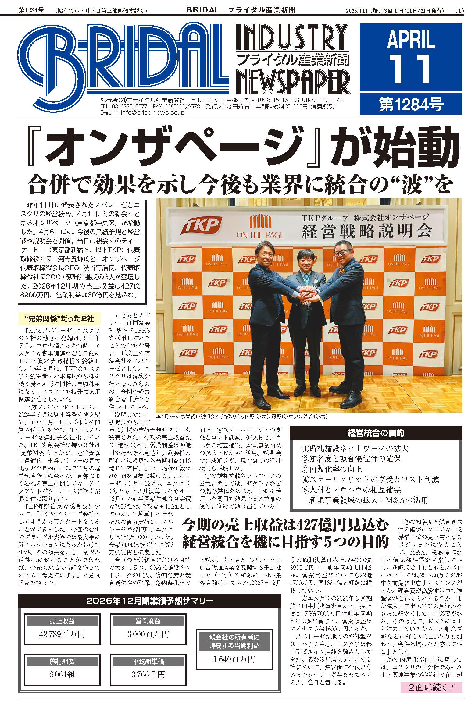 日本の未来を担う結婚産業の独占情報紙