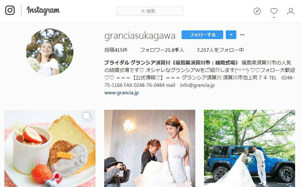 グランシア須賀川(福島県須賀川市)は、2015年8月からインスタグラムを開始した。画像重視の傾向が高まったことがきっかけだ。