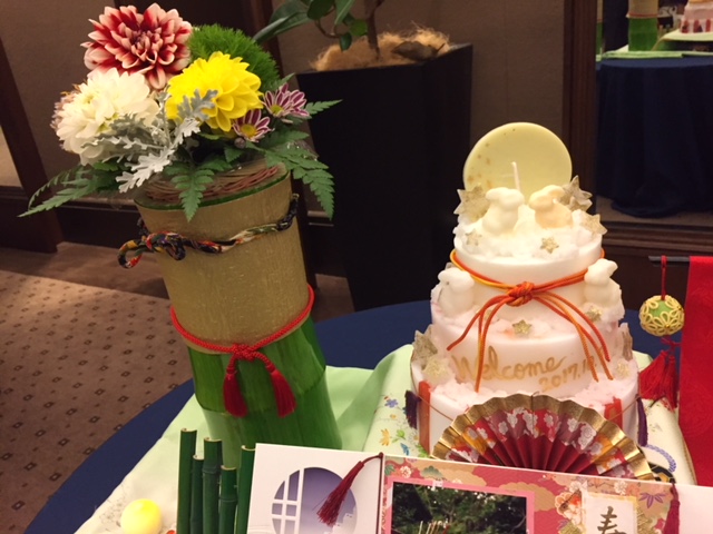 神社で挙式をする友人からのオーダーで、和装に合うウエディングケーキ型キャンドルを制作したことも。ケーキの土台は紅白ストライプに。さらに扇子、赤い紐、結婚式のテーマであるうさぎのモチーフを飾り、和テイストに。