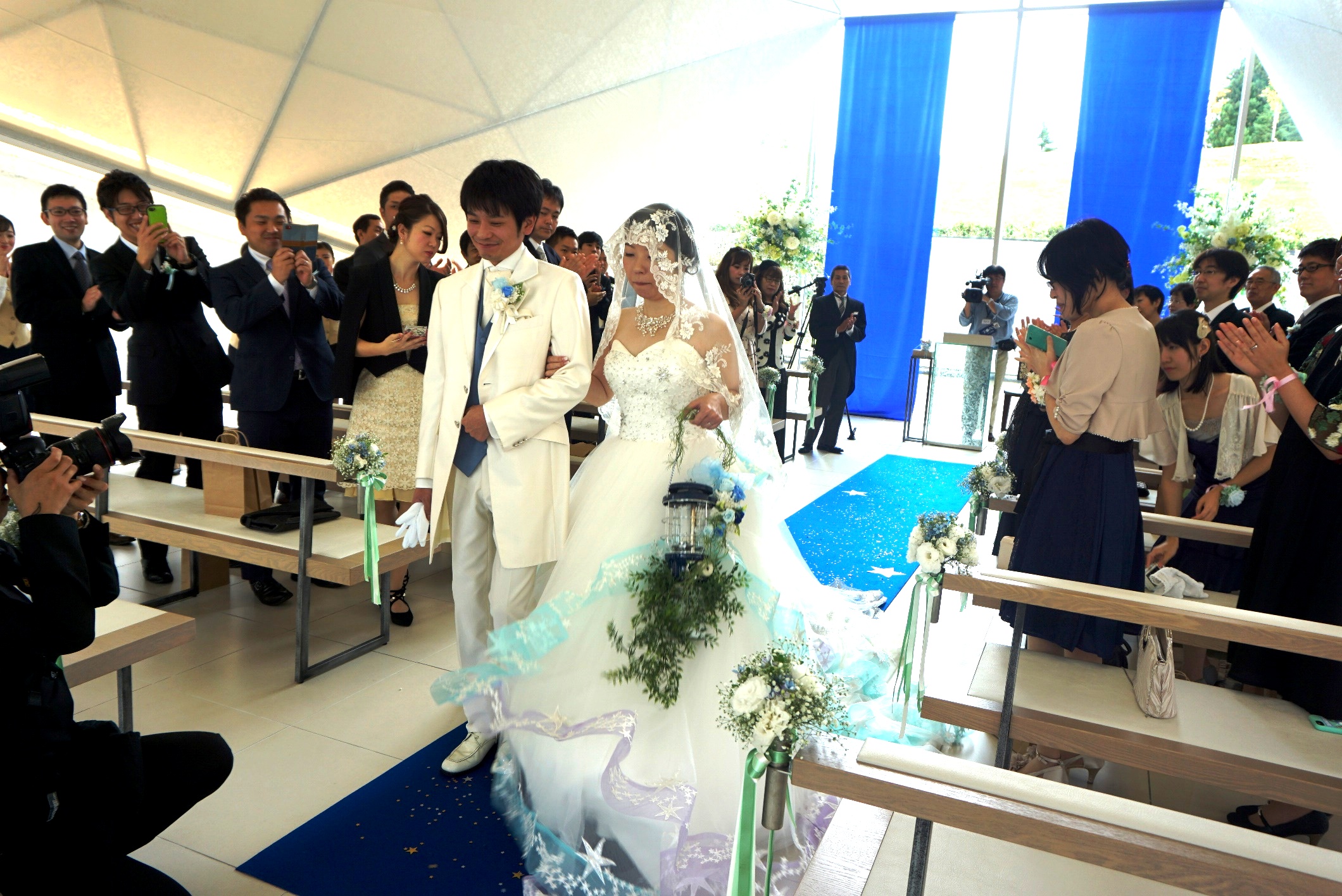 あてま高原リゾート ベルナティオ(新潟県十日町市)と東京ウェディングカレッジ(東京都江戸川区)でブライダルを学ぶ2年生20名は、9 月20日、産学連携のプロジェクトとして、カップルの結婚式を同会場で共同プロデュースした。
