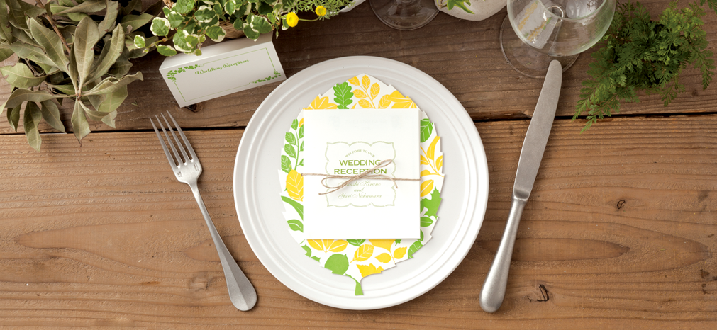 活版印刷とは活字や凸版を使った印刷方法で、インクをのせた部分がへこみ、1 枚1 枚手作業による凹凸の感触を楽しめる。席次表を始めとした同社のウエディングペーパーアイテムは、デザインから版作成、印刷、加工など全ての工程を神戸の自社工場で行なっている。