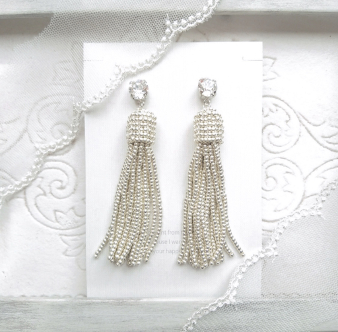 人気の作品は、ビーズタッセル系で、売上の70%を占める。購入者はほとんどが花嫁で、ナチュラルなウエディングドレスにも似合うという声も。特にシルバースワロフスキービーズタッセルのイヤーアクセが人気となっている。