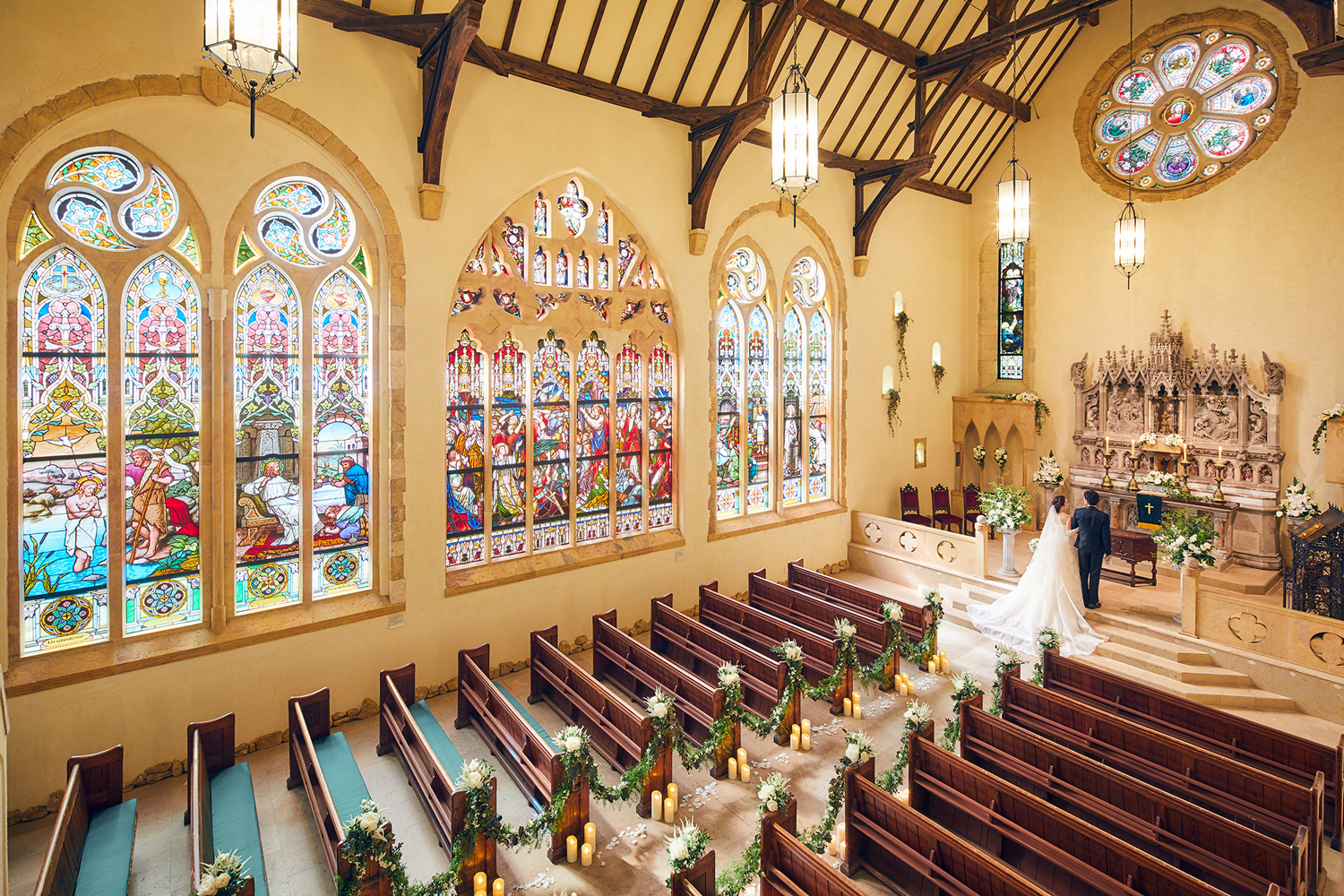 那須高原ミッシェルガーデン(栃木県那須郡那須町)の敷地内にある『那須ステンドグラス美術館』。館内のセント・ラファエル礼拝堂でのフォトウエディングは、年間80組を受注する。