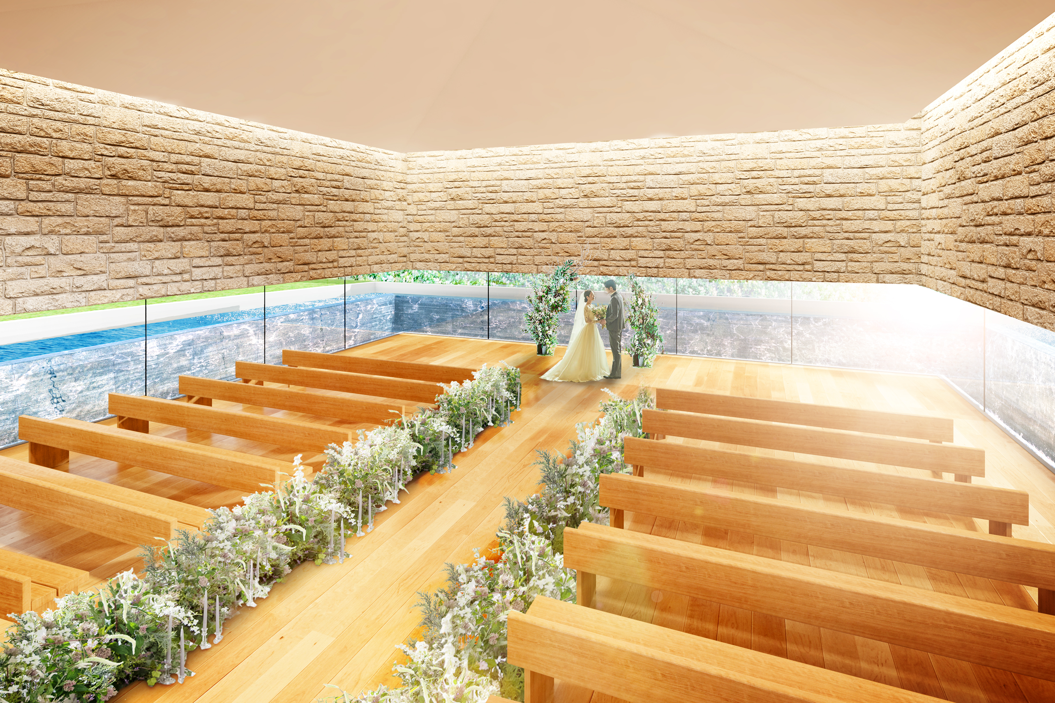 3256㎡の敷地には、2 階建ての披露宴棟と独立型の平屋建てチャペルを建設。施設デザインはKURU(大阪市西区)が担当している。披露宴棟は1 階がバンケットとラウンジ、2 階には新郎新婦の控室と、自社ドレスショップ『ecruspose(エクリュスポーゼ)』を展開する。