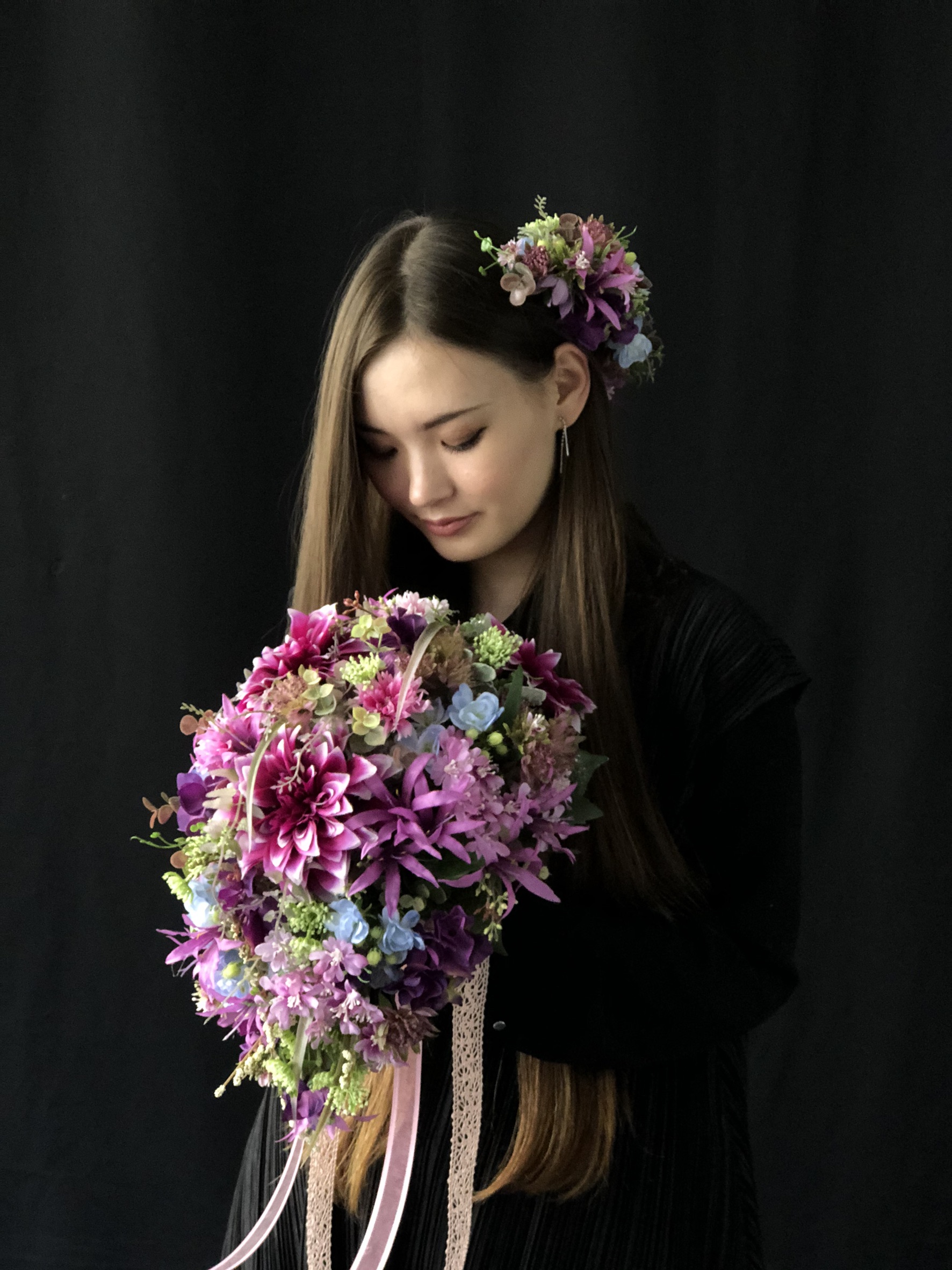 花材のバランスを整えながらブーケを制作【梨乃花 FIND北欧フラワーデ ザイン協会】