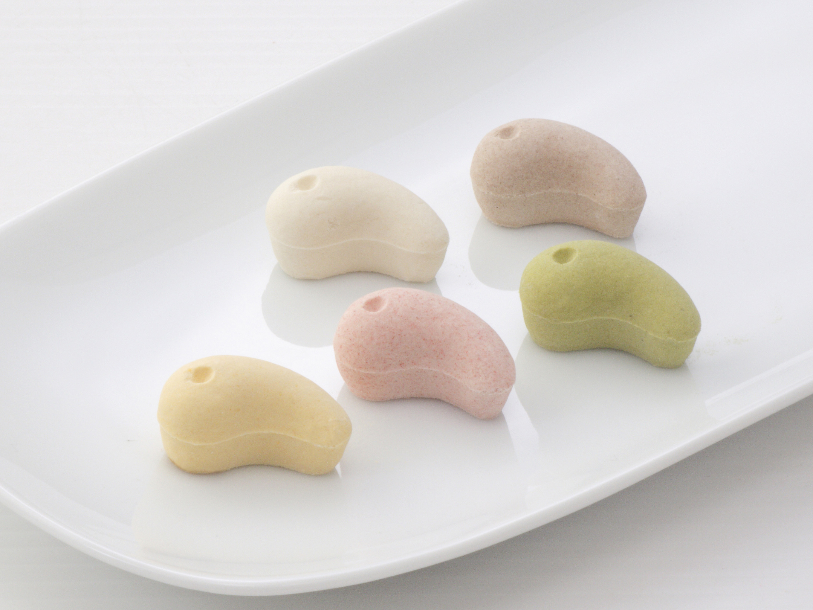 勾玉の形をした干菓子。和三盆やココアなど5 種類をラインナップしている。引き菓子として人気。