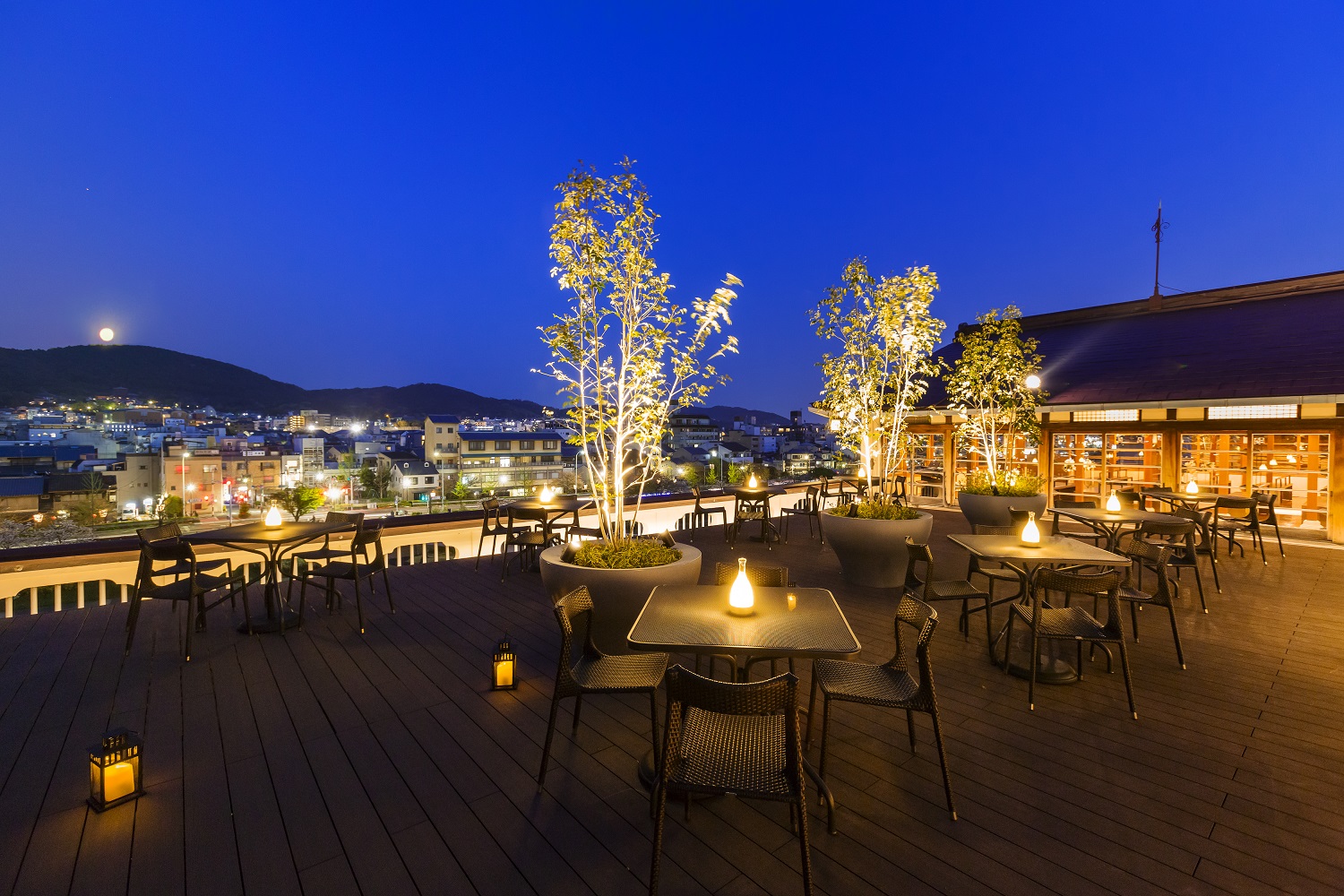 開放感を味わいながら京都の夏を楽しめるよう、バースペースとして稼働。京都東山三十六峰や鴨川も一望できる。テーブルチャージは1人1000円で、雨天時はクローズとなる。