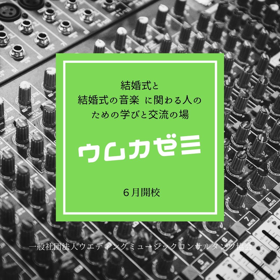 一般社団法人ウエディングミュージックコンサルタンツ協会(東京都港区)は、6月からブライダルミュージックや音楽著作権に関する知識アップを目的とした、オンラインセミナー【wmca(ウムカ)ゼミ】を週に1度のペースで開催している。