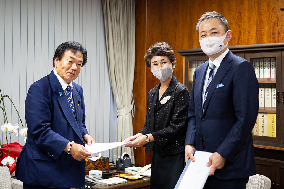 岡山ウエディング協議会(岡山市)は7月30日、『(仮)結婚式実施者支援制度』の導入に関して県庁を訪問。伊原木隆太県知事と菊池善信副知事に要望書を、波多洋治県議会議長に陳情書をそれぞれ提出した。
