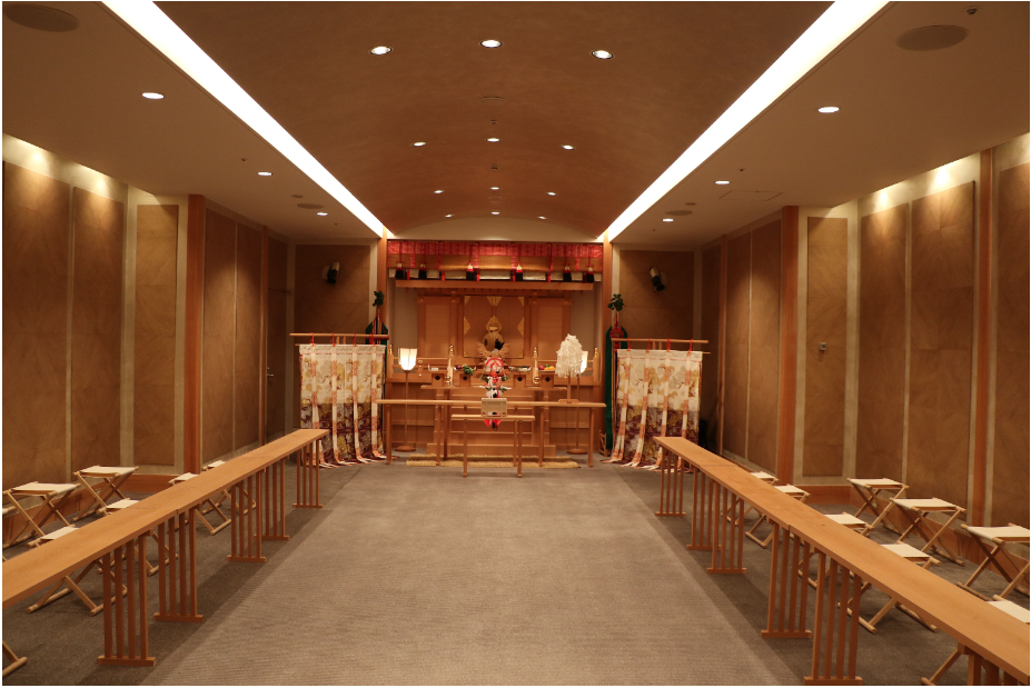 同ホテルの神前式では、金王八幡宮の依り代を置き、神主が祝詞を挙げる。同神社に協力を得て期間中は賽銭箱を設置し、100名が利用。1月7日に奉納した。