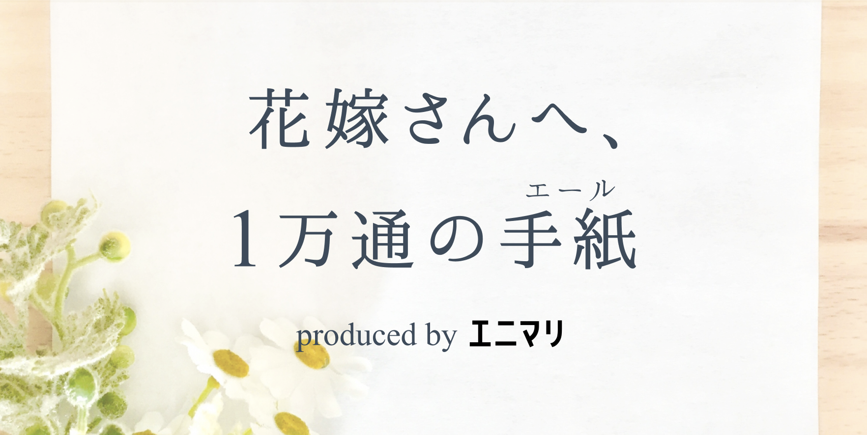 エニマリ(東京都港区)は2月28日まで、【花嫁さんへ、1万通の手紙(エール)】プロジェクトを展開している。みんなのウェディング内に特設サイトをオープンし、メッセージを募っている。