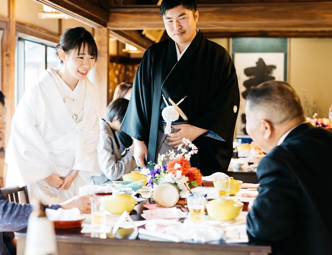 1月16日、足利織姫神社で開催した結婚式は、12月の問合せからわずか1ヵ月間で準備し、新郎新婦、両親、兄弟の計8名で開催した。セレモニー後は近隣の料理屋で会食会も実施した。