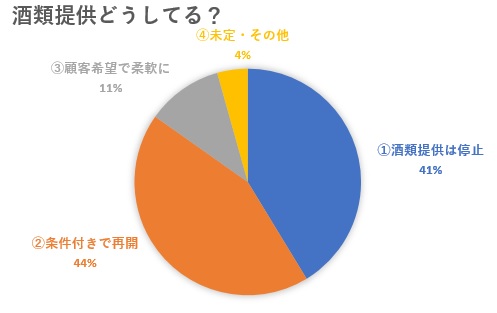 全国から58会場が回答、【原則/酒類提供停止、例外/条件を備えれば可】となっているまん延防止等重点措置の対象地域においては46会場の回答が集まった。ここではアンケート結果と共に、結果を踏まえた夏目哲宏代表の見解を紹介していく。