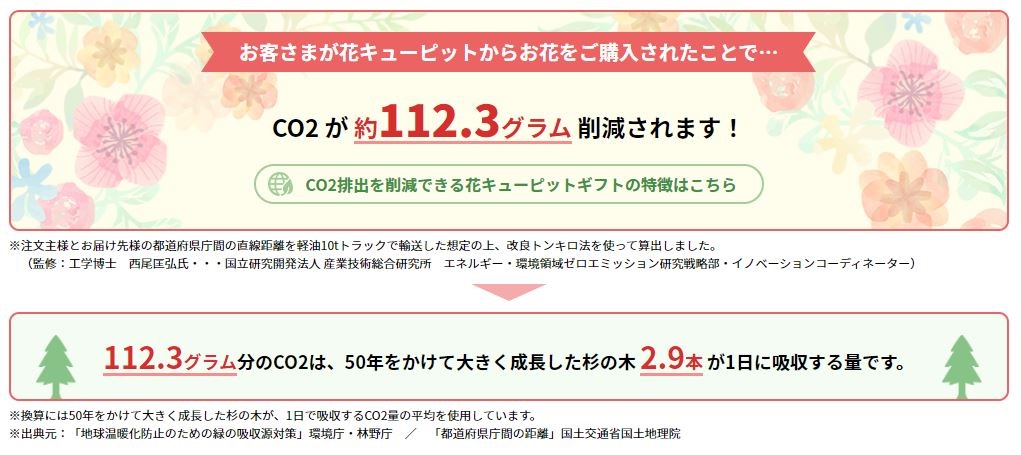 CO₂削減量を注文時に表示【花キューピット】