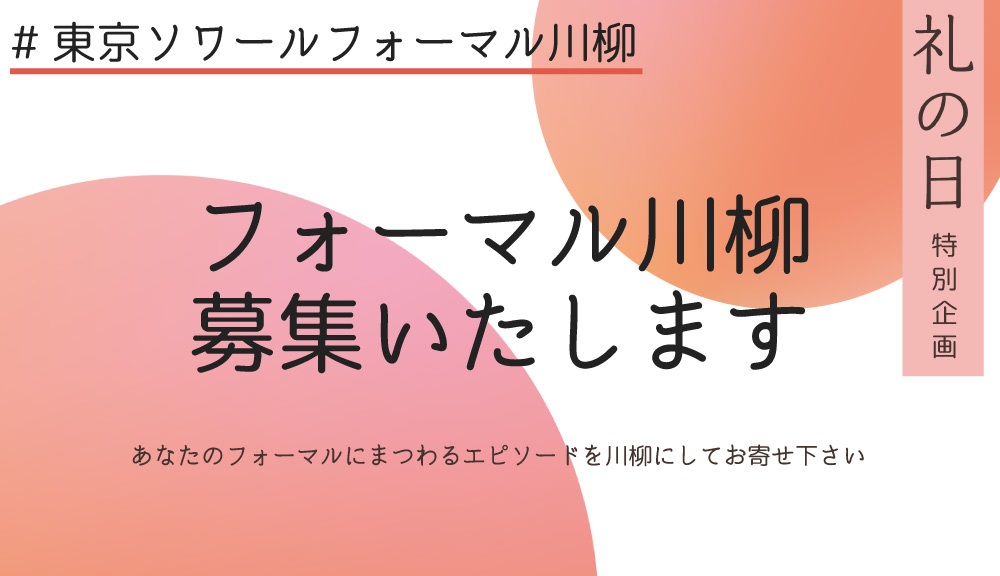 フォーマルウェアの東京ソワール(東京都港区)は10月1日~11日、フォーマルを身近に感じてもらうための【礼の日】キャンペーンを開催する。フォーマルに関するエピソードを題材にしたフォーマル川柳の募集と、2万円以上で使えるクーポンを進呈する。