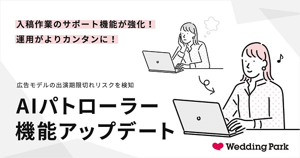 ウエディングパーク(東京都港区)は9月29日、広告モデルの出演期限をアラートすることで契約期限切れリスクを検出するAIパトローラーに関して、入稿作業をサポートする新機能をリリースした。