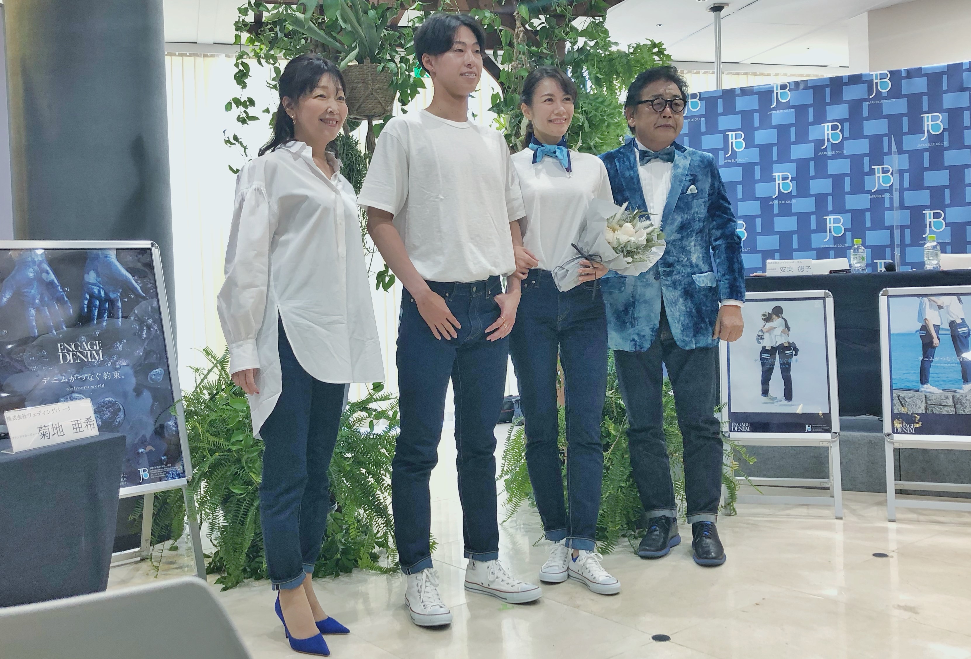 国産ジーンズブランド『桃太郎ジーンズ』を展開するジャパンブルー(岡山県倉敷市)は昨年11月17日、カップリングジーンズ【ENGAGE DENIM(エンゲージデニム)】の記者発表会を開催した。22日から全国の式場に展開し、初年度売上として5000万円を見込んでいる。