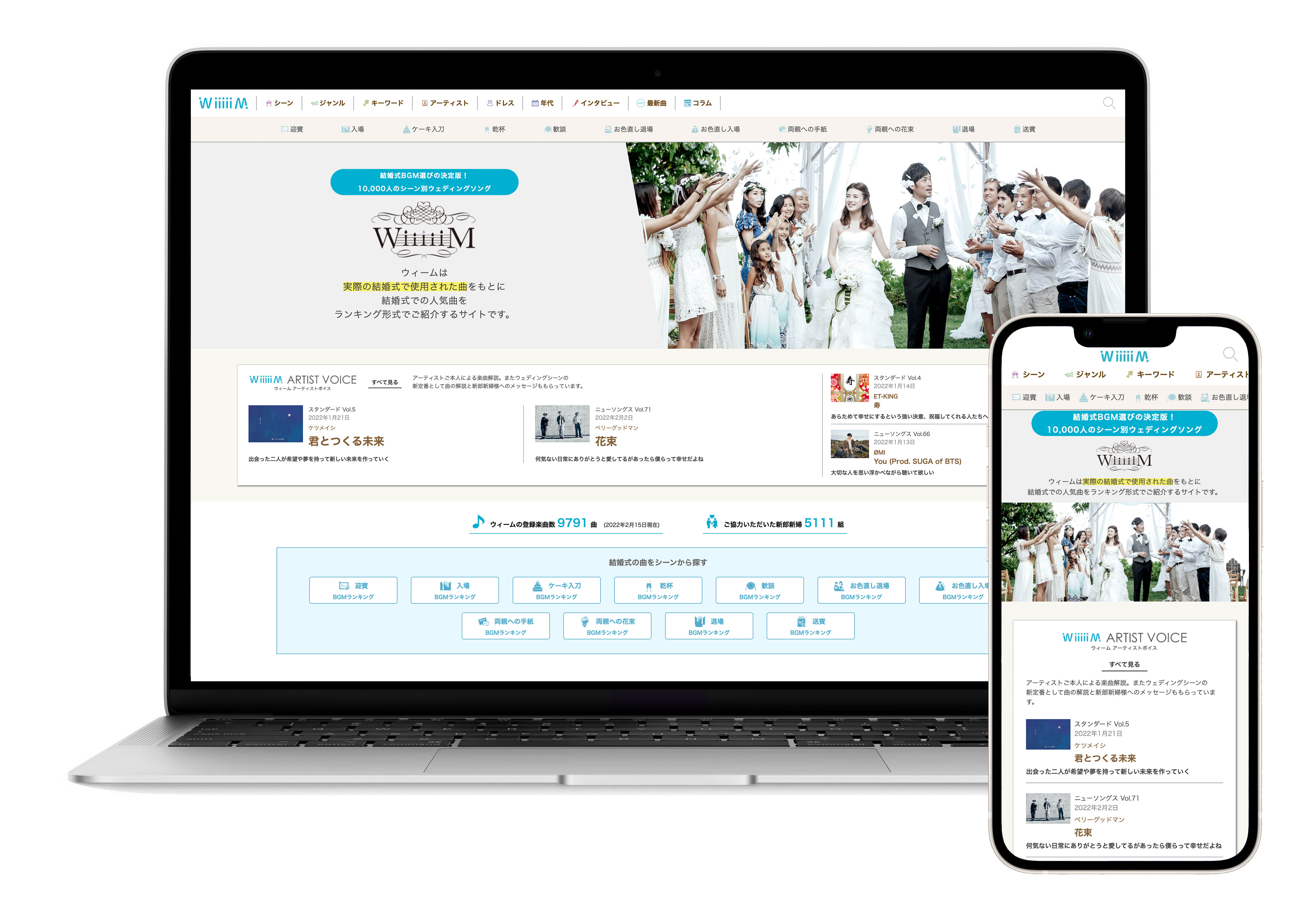 結婚式BGMランキングサイト『WiiiiiM(以下ウィーム)』を運営するサウスポイント(福岡市博多区)は1 月、アーティストがウエディングソングを紹介する【FAVORITE SONGS】の連載をスタートした。2 月現在、全76曲を紹介している。