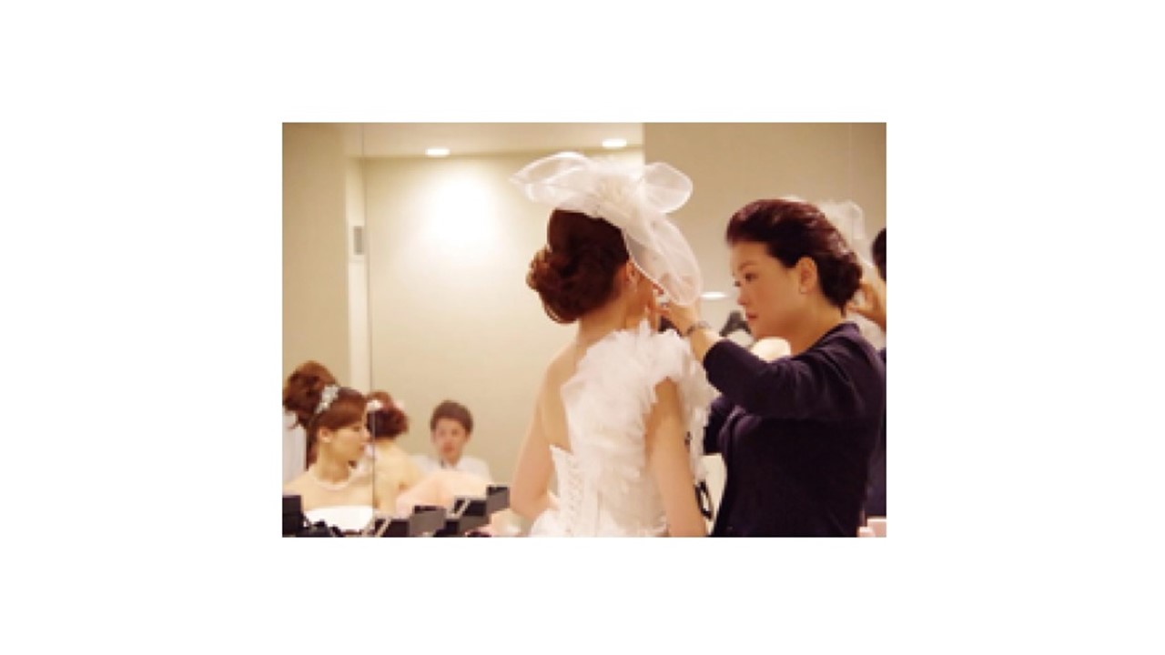3 ヵ月以上前のリハーサル前打合せで、列席美容を受注しているのがマリエ(名古屋市中区)だ。打合せに協力的な会場の場合、一組あたりの列席美容は7 万円に達している。振り袖1万円~ 1 万2000円。留袖が8000円~ 1 万円。アップ5000円前後であり、平均的に7 名前後の列席美容に対応している。