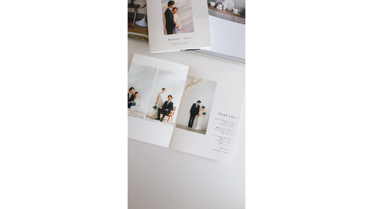 2018年5 月から、DIY用シルクリボン、オーダーメイドのプロフィールブックなどを展開。新郎新婦がスマホから写真を自由に配置し、手軽にプロフィールブックを作れるデザインテンプレートを新たに企画した。現在は雑誌風などの3 種類をラインナップしており、価格はいずれも3700円。
