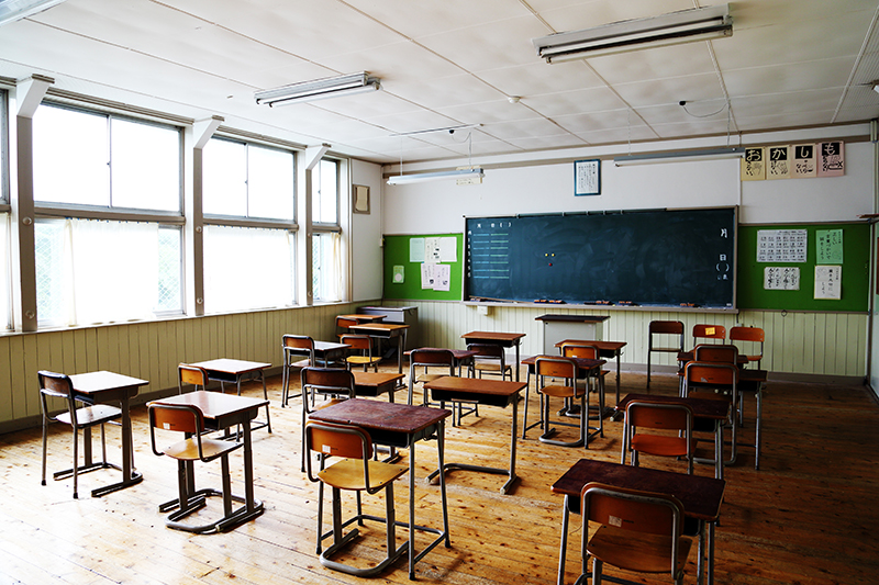 2004年に廃校になった同校は、時間を重ねたヒノキの床が特徴。校舎( 1 階教室以外)・校庭・体育館をフォトスタジオ、レクリエーション会場等として貸し出している。1 日( 9 時~17時まで)5 万5000円で、最大50名まで利用できる。