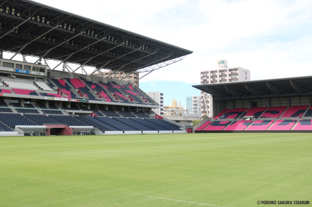 同施設は、大阪市の所有する球技専用のスタジアム。セレッンスタンドなど。ピッチの指定場所でも撮影できる。