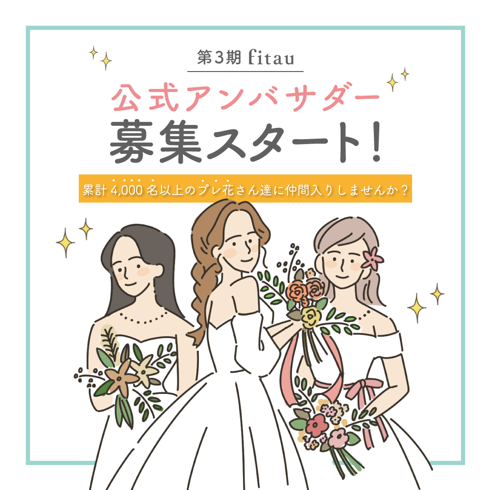 エーキューブ(東京都多摩市)の運営するブライダルアイテムショップ『fitau(フィタウ)』は、4月3日から現役プレ花嫁を対象にした、第3期『fitau公式アンバサダー』の募集をスタートしている。