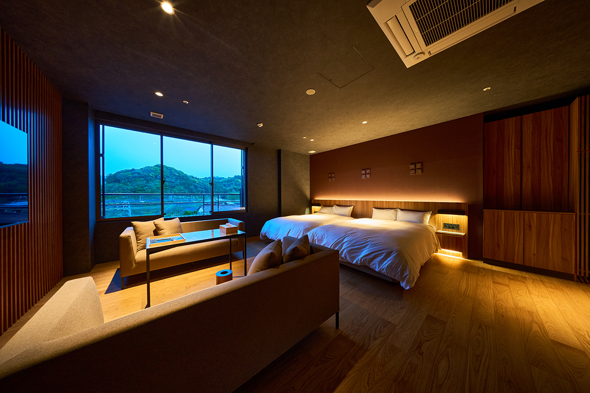 武雄温泉森のリゾートホテルを全面改装したもので、観光庁の補助事業『地域一体となった観光地の再生・観光サービスの高付加価値化事業』を活用。武雄市と共に伴走支援を受けて、リニューアルオープンに至った。同社の展開するガーデンテラスホテルズとしては、初の温泉旅館ブランドになる。