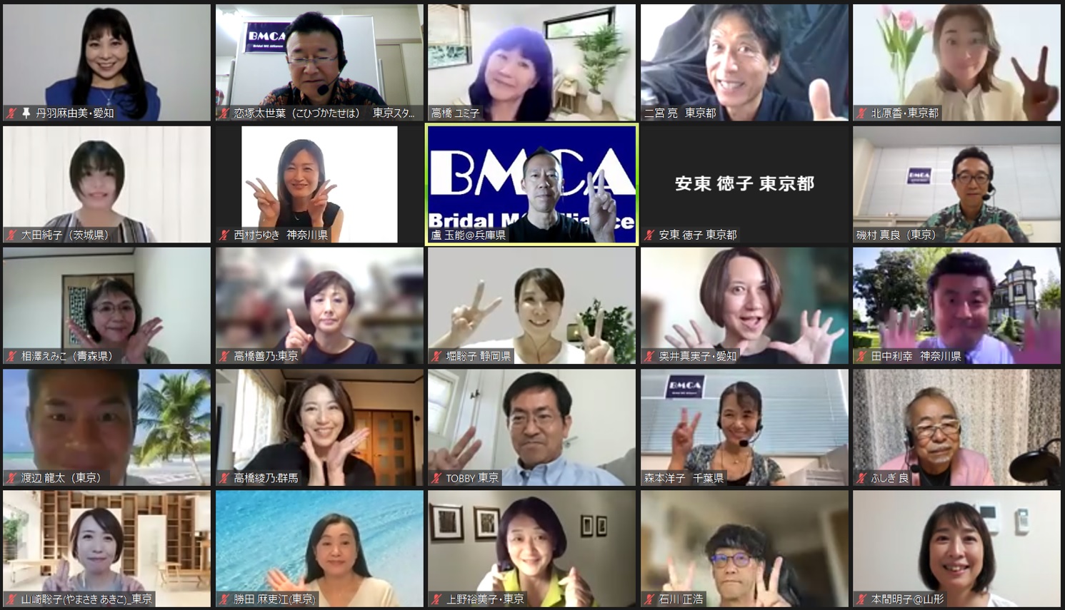 BMCA全日本ブライダルMCアライアンス(東京都世田谷区)は8 月29日、年次総会の【第17回BMCAコンファレンス】をオンラインで開催した。当日は司会者のほか、プランナーも含め合計39人が参加した。