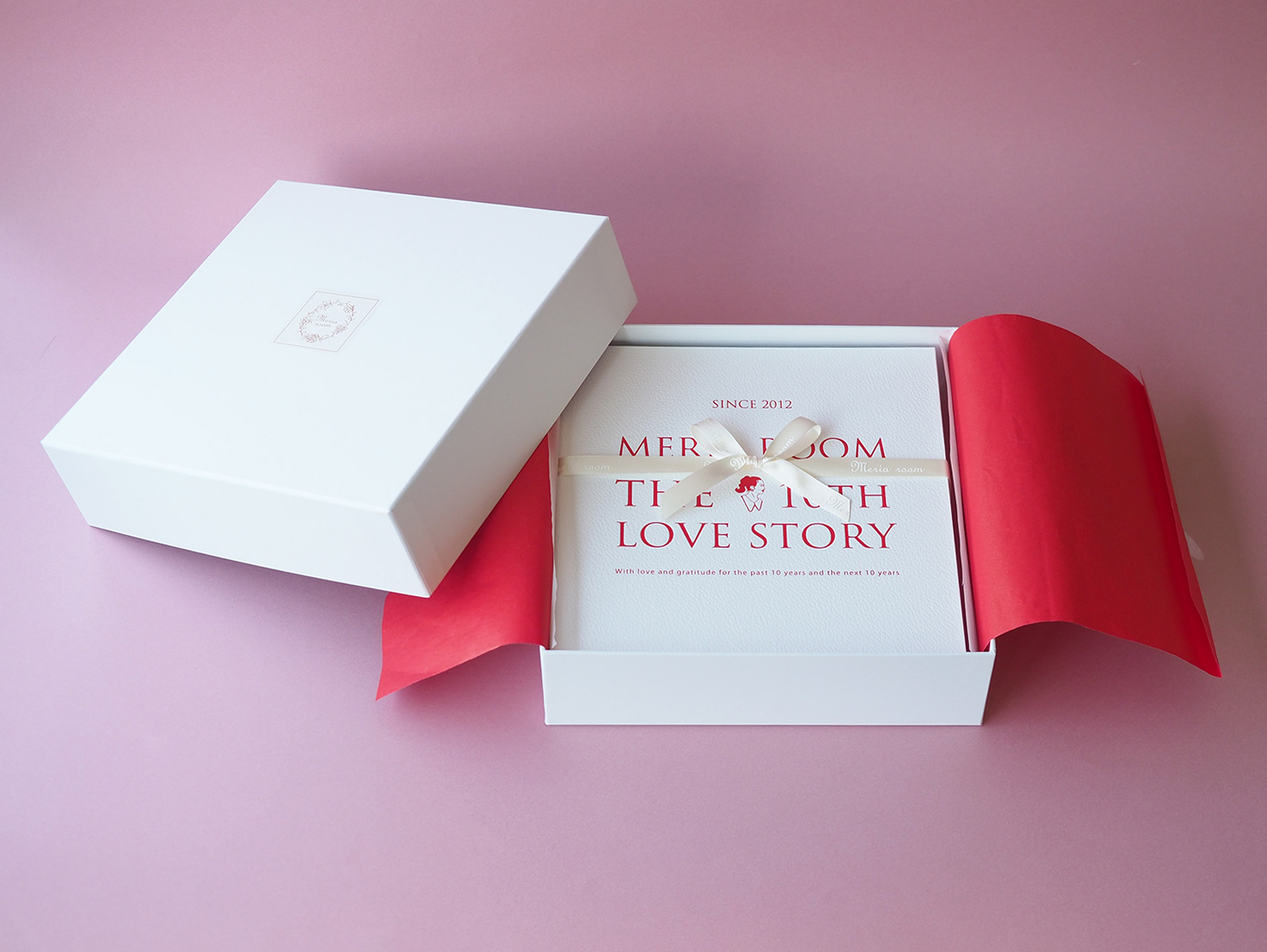 プロポーズギフトなどを展開するメリアルーム(東京都港区)は昨年12月、創業10周年を迎えた。これを記念し、7 月にオリジナルギフト【MERIAROOMTHE 10TH LOVE STORY】を製作。パートナー企業をはじめ、同社スタッフにも提供した。