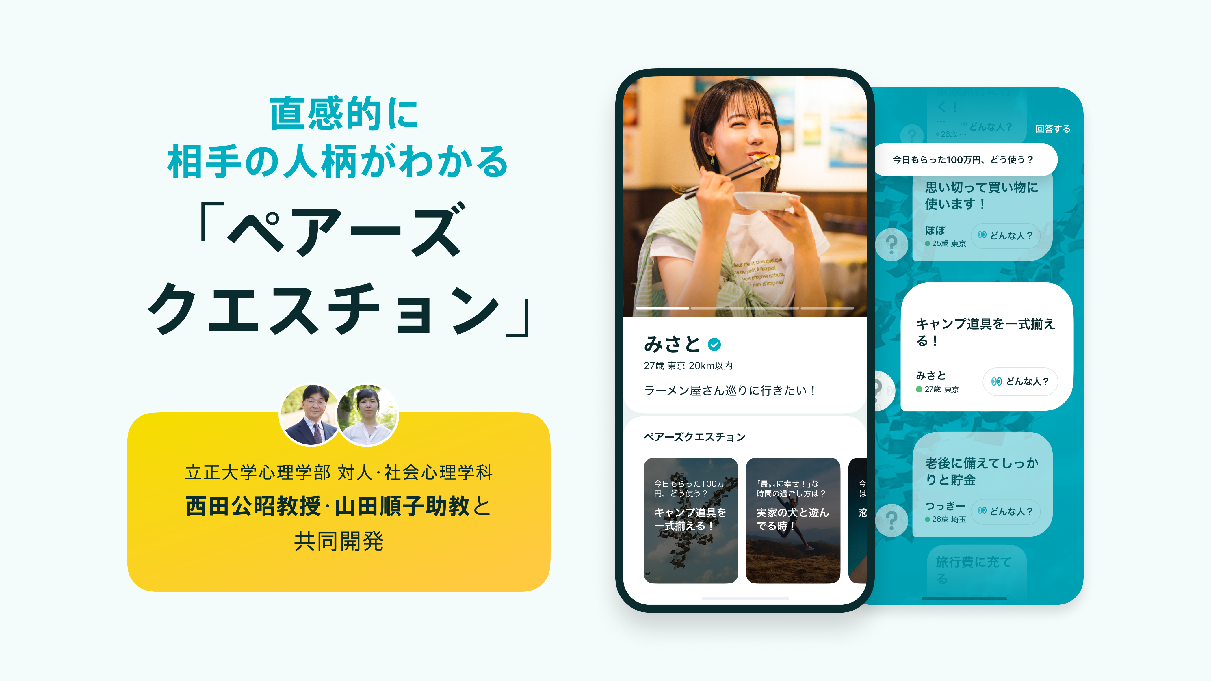 マッチングアプリ『Pairs』を運営するエウレカ(東京都港区)は11月28日、恋愛心理学に基づき、相手の人柄理解に繋げる新機能【ペアーズクエスチョン】の提供開始を発表した。
