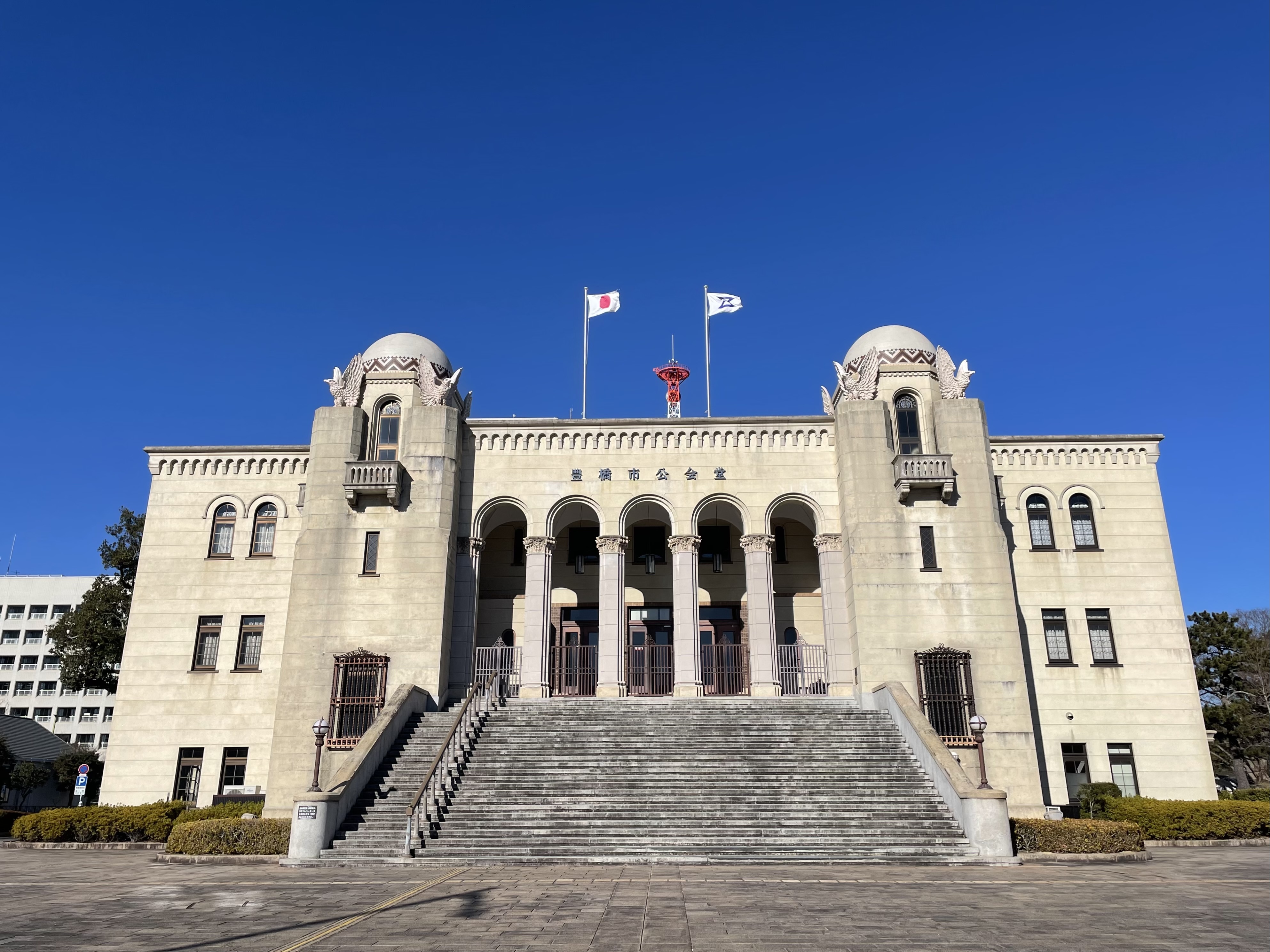 観客席数601の大ホールを併設し、式典や講演会などに使用されている同施設。豊橋市の市政25周年記念事業と、昭和天皇の御大典記念事業を兼ねて建設に至った。