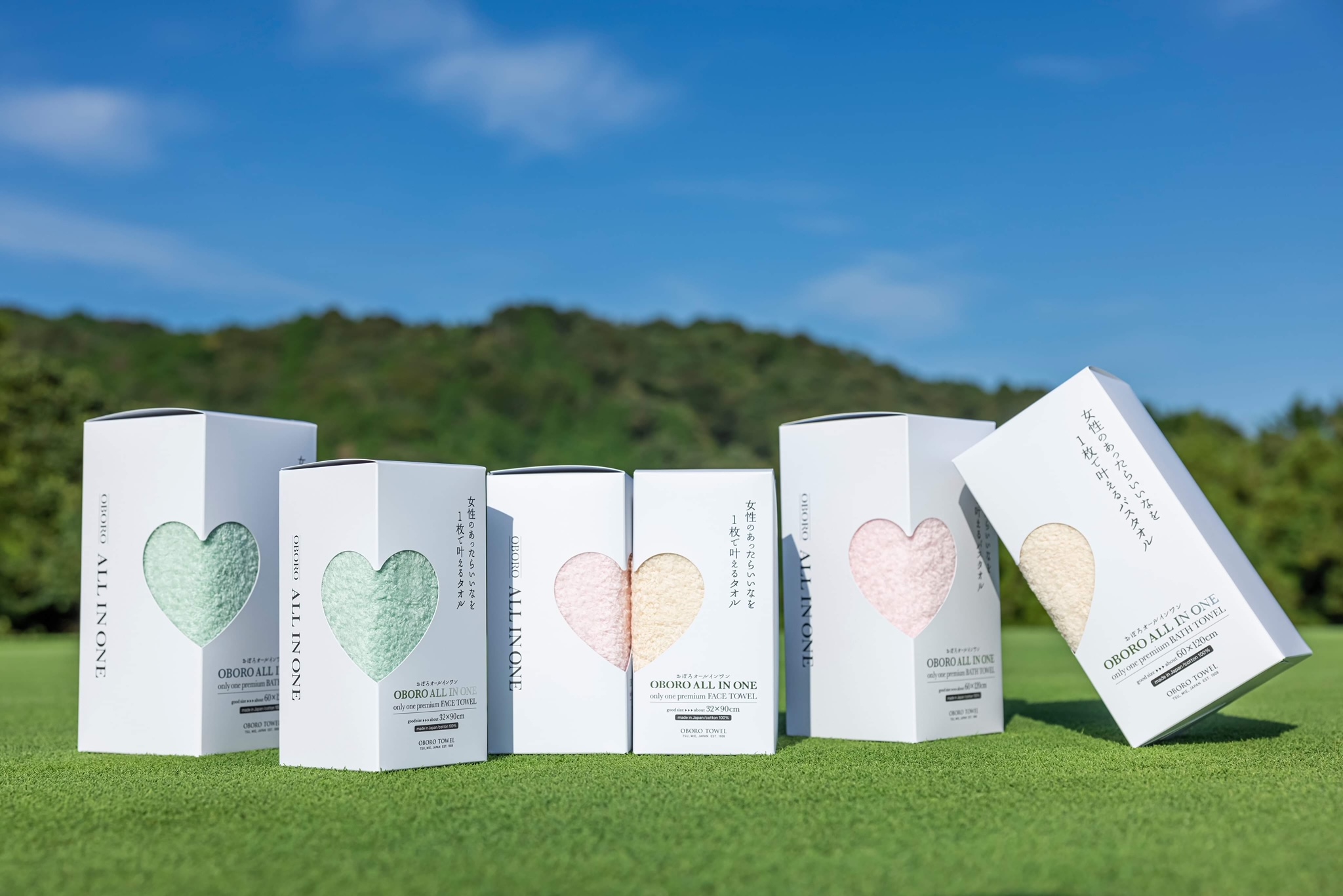 おぼろタオル(三重県津市)は、『災いを除き福を招く』と言い伝えのある、ハート型の猪目窓をモチーフにしたバスタオル【おぼろオールインワン】を展開している。価格は4950円。