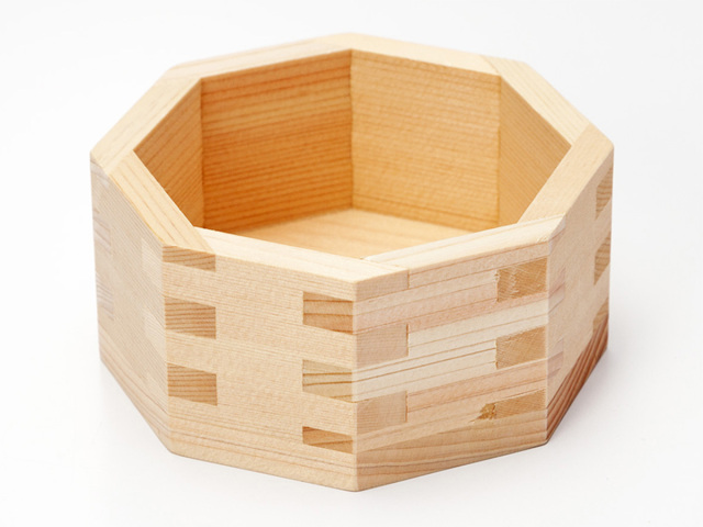 中でもブライダルにおいて人気が高くなってきているのが、【八角形の枡】だ。縁起の良い形状を生かして新郎新婦が花材やクッションを詰め、自作のリングピローとして利用するケースも増えている。同商品は本来、小物入れとして製作されたが、SNSや口コミを通じてブライダル需要が広がった。
