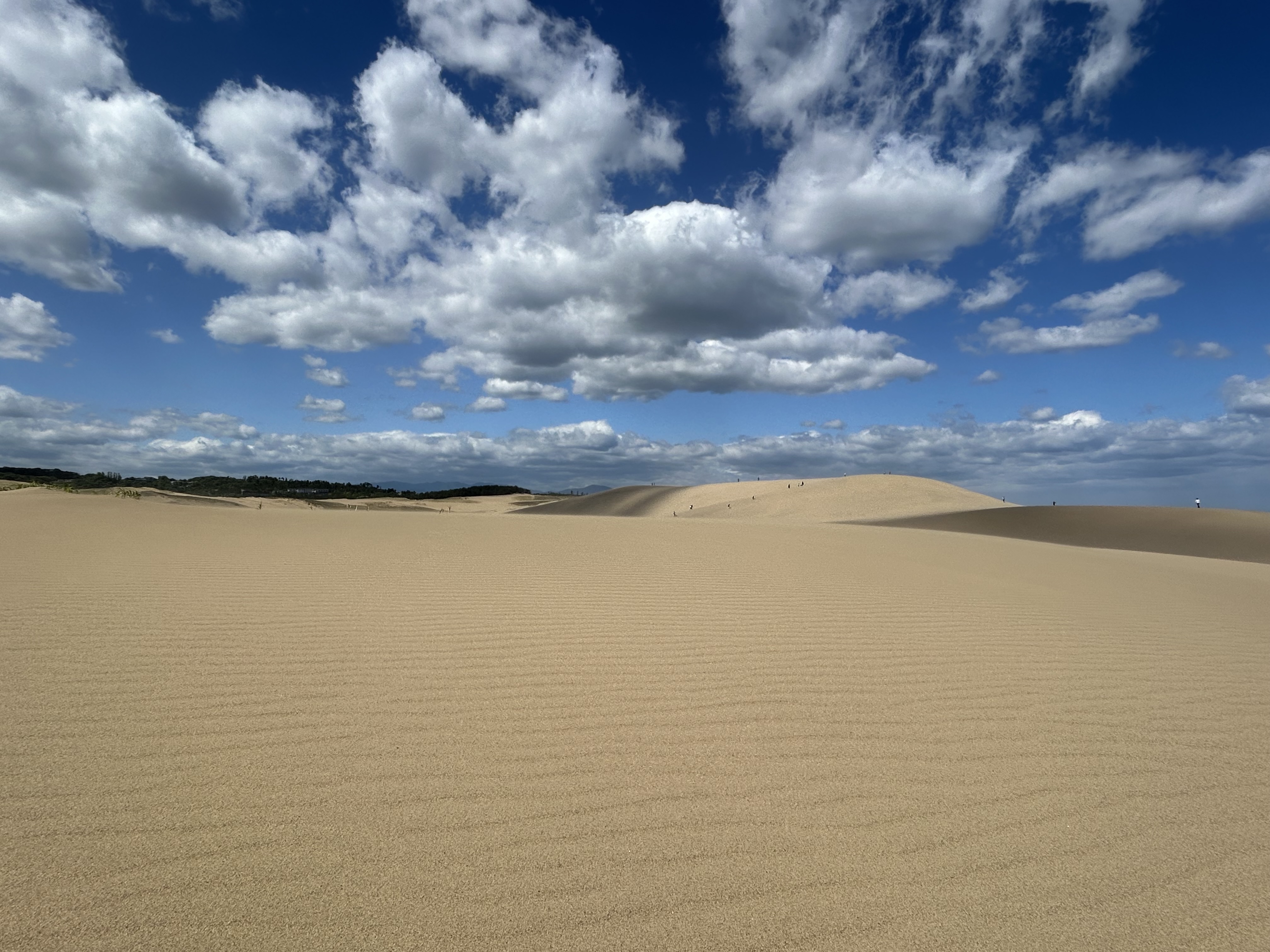 東西約16km、南北約2.4kmにわたる、日本最大級の砂丘。この砂丘は中国山地の花崗岩が風化し、千代川によって日本海へ運ばれた砂が、偏西風と潮流によって海岸に打ち上げられ、さらに季節風によって内陸へと吹き上げられることで、長い年月をかけて形成された。国の天然記念物にも指定されており、散策はもちろんラクダに乗れるほか、パラグライダーなどのアクティビティを楽しめる。前撮りも可能。