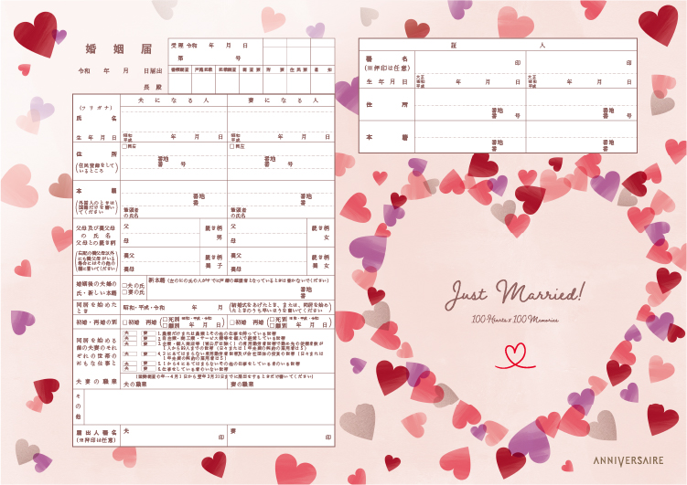 無料の婚姻届が100デザインに【アニヴェルセル】