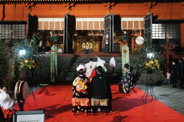 日光エリアで累計3200組の挙式をプロデュースしている同社。ライトアップイベントとコラボした公開神前式は2016年から毎年実施しており(2020・21年はコロナにより休止)、昨年8回目を迎えた。「神前式の参列経験がない」との声も多いことから、観光客も多いイベント内での公開スタイルにすることで、和婚の価値を発信。あわせて、ウエディングコンテンツを通じ日光を盛り上げることも目的の1つとしている。