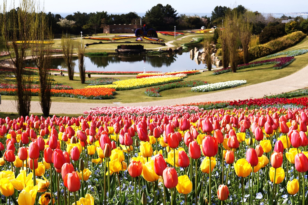 『国際的でリゾート感溢れる海辺の園遊空間の創造』を基本とする同公園。2000年3月〜9月までの期間には国際園芸・造園博『ジャパンフローラ2000』が開催された。2002年3月に文化・交流ゾーンの一部30.1haを供用開始。順次整備を進め、2022年7月現在43.1haが開園している。大規模な花壇や芝生公園、大型複合遊具などを併設しており、海の景色が楽しめる。前撮りにも対応している。