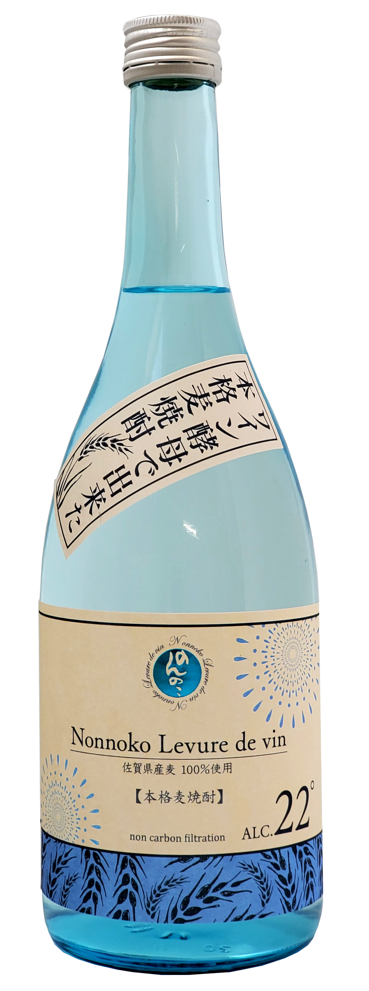 宗政酒造(佐賀県有田町)は、ワイン酵母で仕込んだ本格麦焼酎【のんのこワイン酵母仕込みブルーボトル】を展開している。